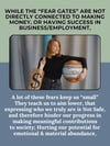 The 20 Human Design Gates of Fear is a 29 page PDF that takes you on a journey of understanding your fears- from the level of their center, and to the gate. For each gate you'll discover the meaning & expression of this fear, how to spot it when it hits, and reflective/journaling questions to tackle this fear and bring it to awareness.